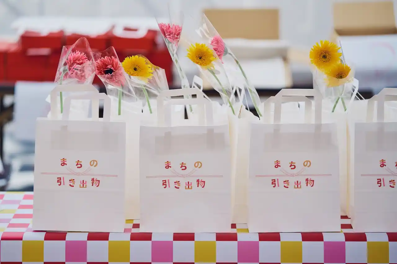 結婚式の引き出物になぞらえ、wedding marchに参加してくれたすべての方へ、地域の特産品などが当たる「まちの引き出物抽選会」を実施しました。 |
