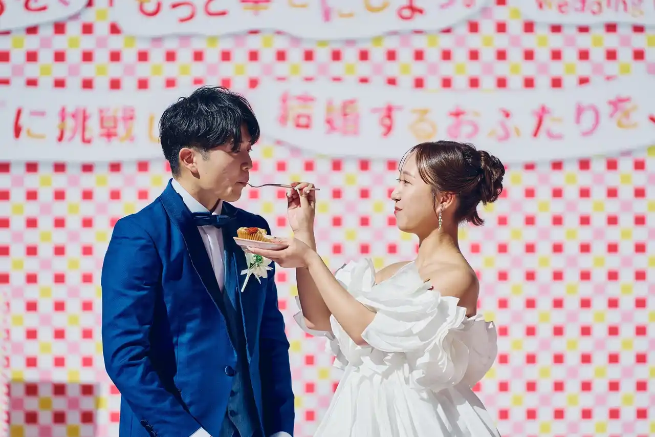 静岡県浜松市で結婚式場を運営する株式会社鳥善と共創し、新川モールにて「まちの結婚式」を開催。浜松在住のカップルを、その場に集まったまちの皆さんでお祝いするという、祝福のシェア(共有体験)を行いました。ギネス世界記録(TM)を達成した「クロダイのマフィン!」を使ったファーストバイトや、カップルへのサプライズプレゼントとして、当日集まった参加者で作り上げたウエディングボードの贈呈などを行いました。 |