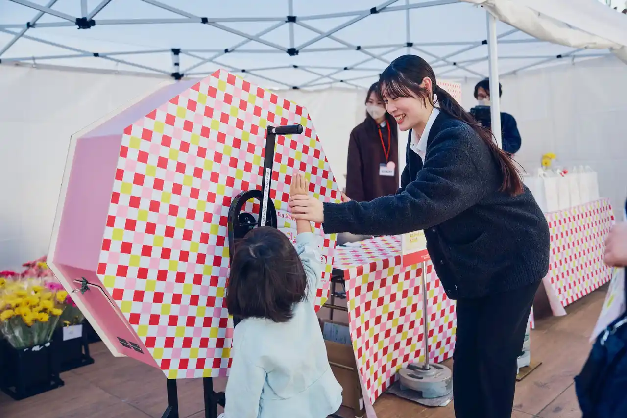 当日は「ギネス世界記録(TM)」への挑戦のみならず、「まちの結婚式」や「まちの引き出物抽選会」、地元の学生・団体による「祝福ステージ」など、大人も子どもも誰でも楽しめるプログラムにて構成。体験者数は700人を超え、訪れた人々の笑顔が溢れるイベントとなりました。 |