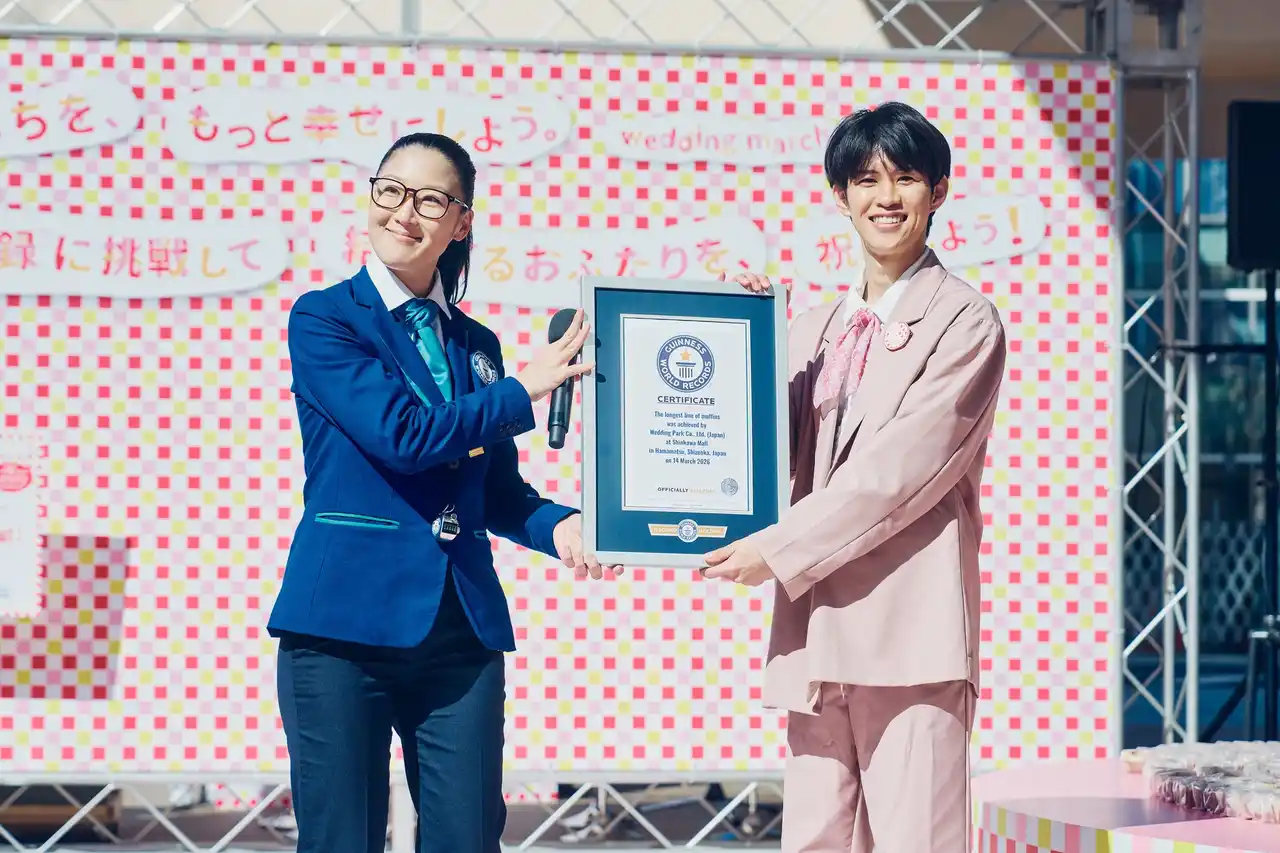 株式会社ウエディングパーク(本社:東京都港区、代表取締役社長:日紫喜 誠吾)は、2026年3月14日(土)に静岡県浜松市にて、地域共創型イベント「wedding march ー まちを、もっと幸せにしよう。(以下、wedding march 2026)」を浜松市後援のもと開催。イベント内で、ギネス世界記録(TM)(「Longest line of muffins(最も長いマフィンの列)」)に挑戦した結果、無事に達成したことをお知らせいたします。当日は700人以上の方がイベントを体験し、「まちの結婚式」として浜松在住のカップルをお祝いいたしました。本イベントは、2026年3月22日(日)に茨城県水戸市でも開催予定です。 |