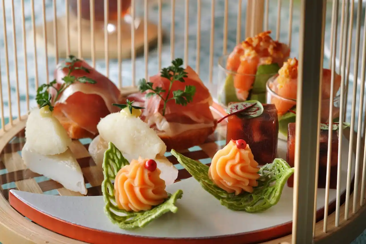 アフタヌーンティーで提供される品々は、宮城の豊かな食材をフランス料理の技法で昇華させた、彩り豊かなラインナップです。和と洋が軽やかに重なり合う、春限定の味わいを多く取り揃えています。地元で長年愛されてきた味覚を、和紅茶やスパークリングに合うよう、軽やかに仕上げました。 |