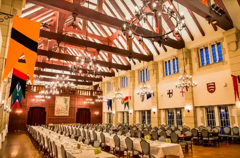 夕食:会場ごとに異なるコースディナー(リフェクトリーまたはフォルスタッフパブ) 朝食:ブッフェブレックファスト(リフェクトリー) |