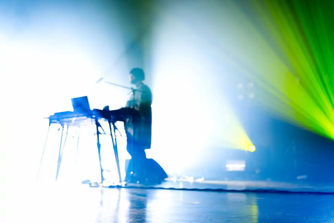次に現れたのは長谷川白紙。凄まじい爆音の電子音が降り注ぐと、観客の身体が自然と揺れ始める。不規則なトラックに呼応するように、それぞれがそれぞれのノリで身体を揺らす中、長谷川白紙もステージをぐるぐると歩きながら歌う。同じ音楽を共有しながら、各々が自由に楽しんでいる光景が実に面白い。暗闇の中で点滅するライトに照らされながらコミカルに動き回る姿は、どこかマスコットのようでもある。未発表曲も披露される中、ハイライトとなった「口の花火」では、鍵盤を弾きながらのアレンジで魅せた。その後も、Zepp