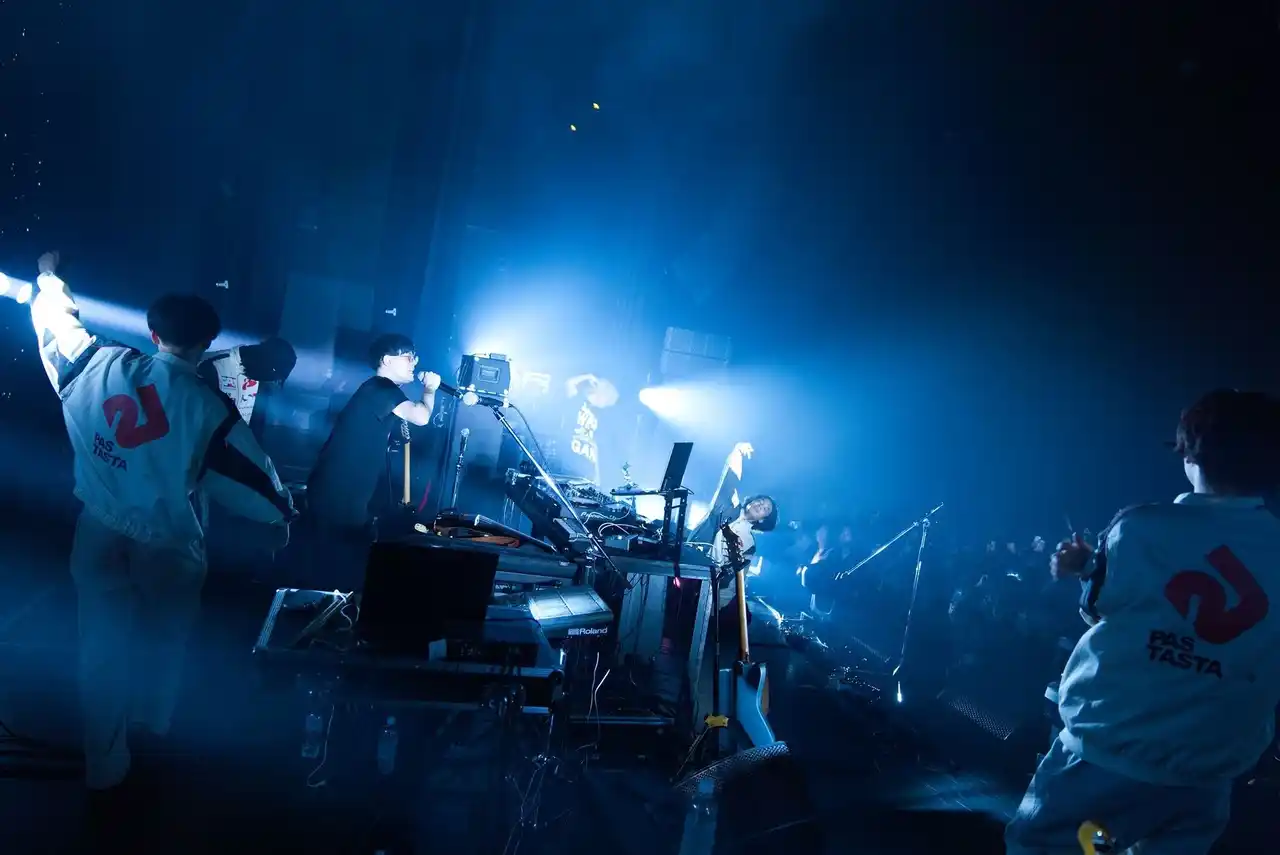 熱狂的なパフォーマンスで観客の心を一気に掴んだsix impalaに続き、彼らからの影響を公言するPAS TASTAが登場する。「six impalaがいなかったらPAS TASTAは生まれていなかったかもしれない」と本人たちが語るように、このリレーには大きな意味がある。まずは「GRAND