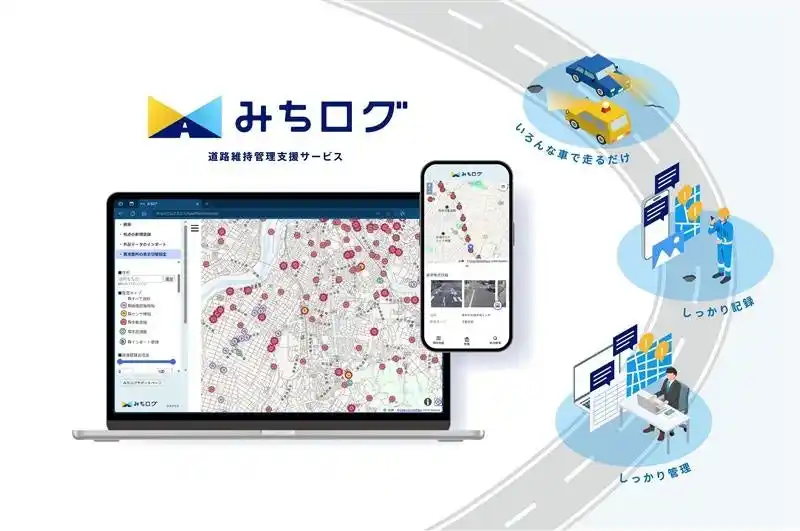 インフラ老朽化に伴う道路維持管理の課題に対し、車両で収集した走行データや車載カメラで撮影した画像をもとに、ポットホールやひび割れなどの道路の異常を検知し、道路補修の計画支援・対策実施に繋げる、AIを活用した道路維持管理のトータルサービス。自治体や交通事業者と連携し、未然防止と業務効率化を通じて安全な道路環境づくりに貢献しています。 |
