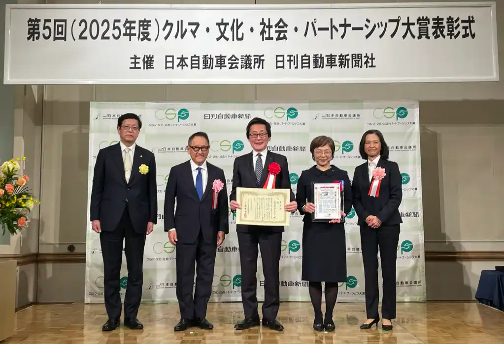 株式会社アイシン(本社:愛知県刈谷市、取締役社長:吉田守孝、以下アイシン)は、一般社団法人日本自動車会議所・日刊自動車新聞社が主催する「第5回 クルマ・文化・社会・パートナーシップ大賞」(以下、CSP大賞)において、乗り合い送迎サービス「チョイソコ」が「大賞」を初受賞しました。さらに部門賞として、道路維持管理支援サービス「みちログ」が「モビリティ・ソリューション賞」を受賞し、ダブル受賞となりました。 |