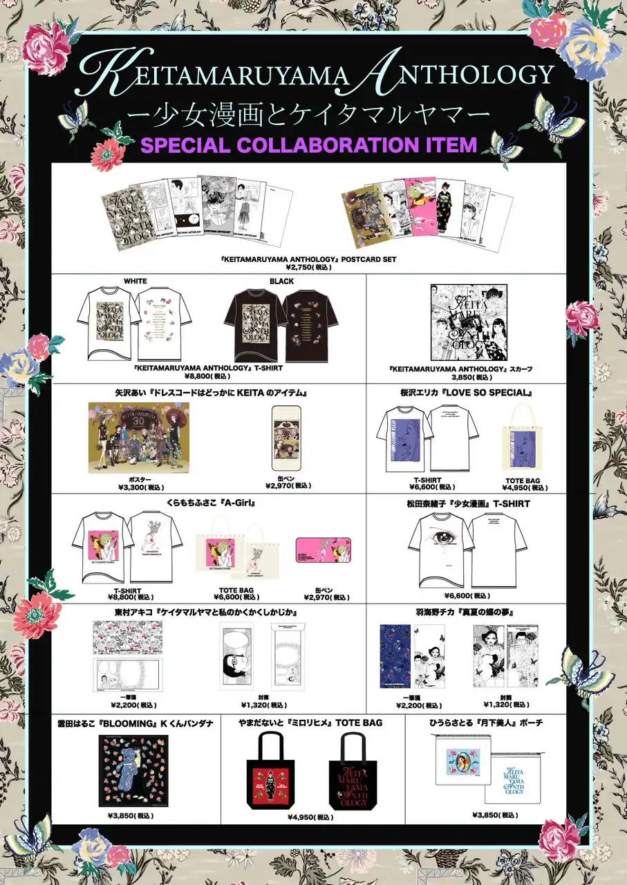 会場内では、書籍『KEITAMARUYAMA ANTHOLOGY』をはじめ、人気少女漫画作家が本書のために描き下ろしたイラストを使用したオリジナルグッズの販売も。 |
