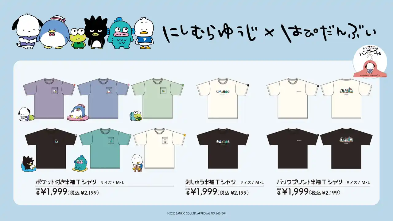 アパレルメーカーである株式会社ブランチ・アウト(以下、ブランチ・アウト、本社:東京都渋谷区、代表取締役社長:大谷 真一)は人気クリエイターにしむらゆうじ氏による、株式会社サンリオの「サンリオキャラクターズ」の特別デザインを用いた春夏向けのウェアを製作。全国のドン・キホーテ(一部店舗を除く)にて3月20日(金)より発売されます。 |