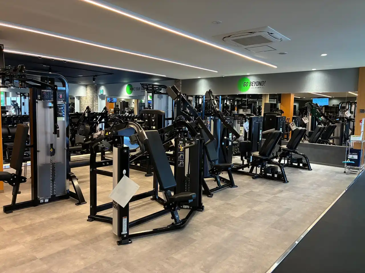 設備:有酸素マシン13台、筋トレマシン13台、 パワーラック3台、スミスマシン1台、ダンベル1kg~50kg、InBody1台、日焼けマシン1台、水素水1台、、プロテインサーバー1台、骨盤底筋チェア1台、更衣室3室、トイレ3室、シャワー4室 |