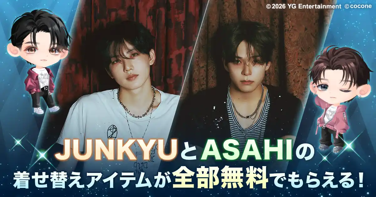| ココネ株式会社(本社:東京都世田谷区、代表取締役社長:石渡 真維、以下「ココネ」)は、アバターの着せかえやお客様同士のコミュニケーションが楽しめるスマートフォン向けアプリ『ポケコロツイン』において、グローバルボーイズグループ『TREASURE』の「JUNKYU」「ASAHI」とのコラボレーション企画を、2026年3月19日(木)より4月19日(日)まで期間限定で開催することをお知らせします。 | |||