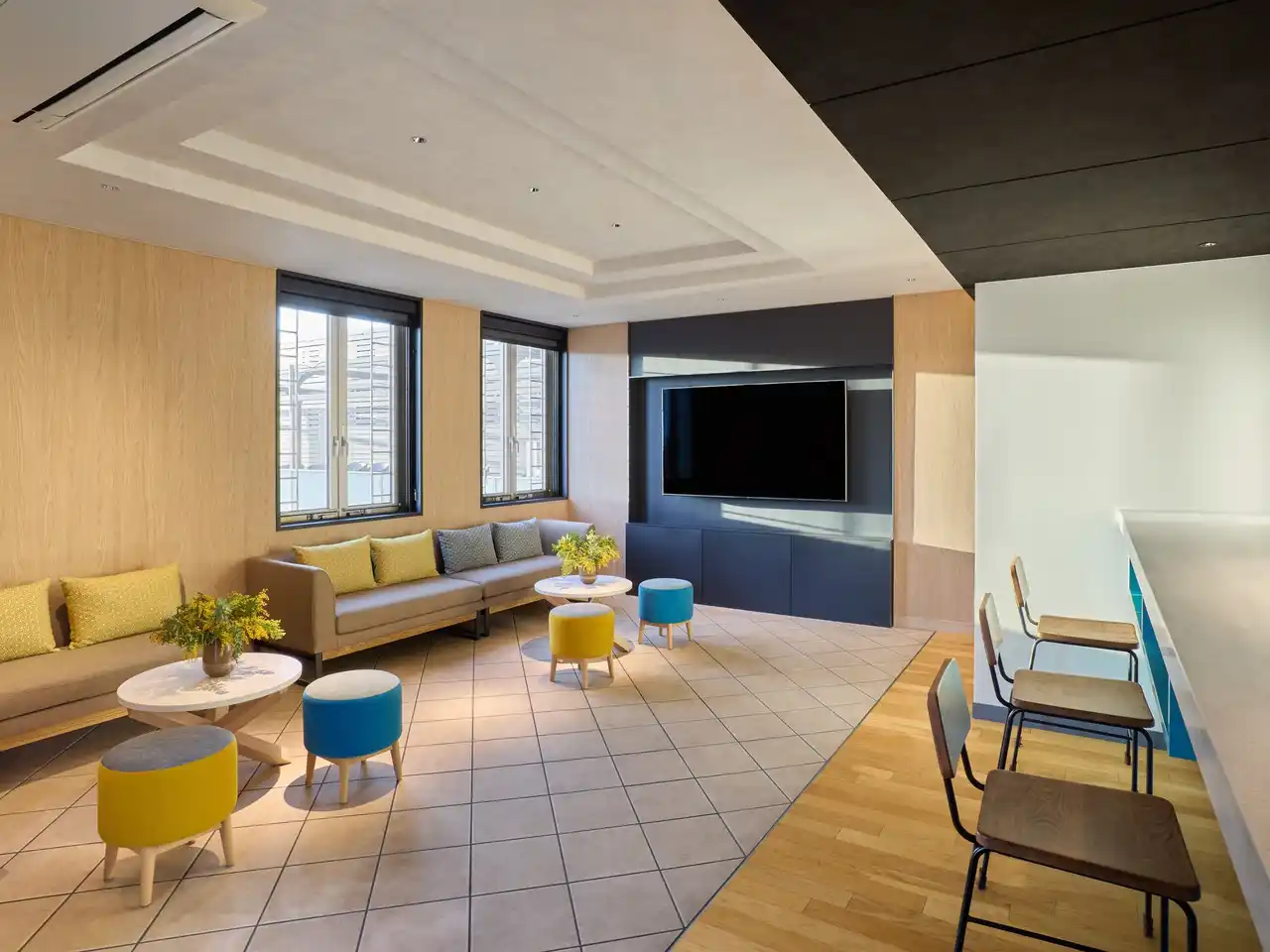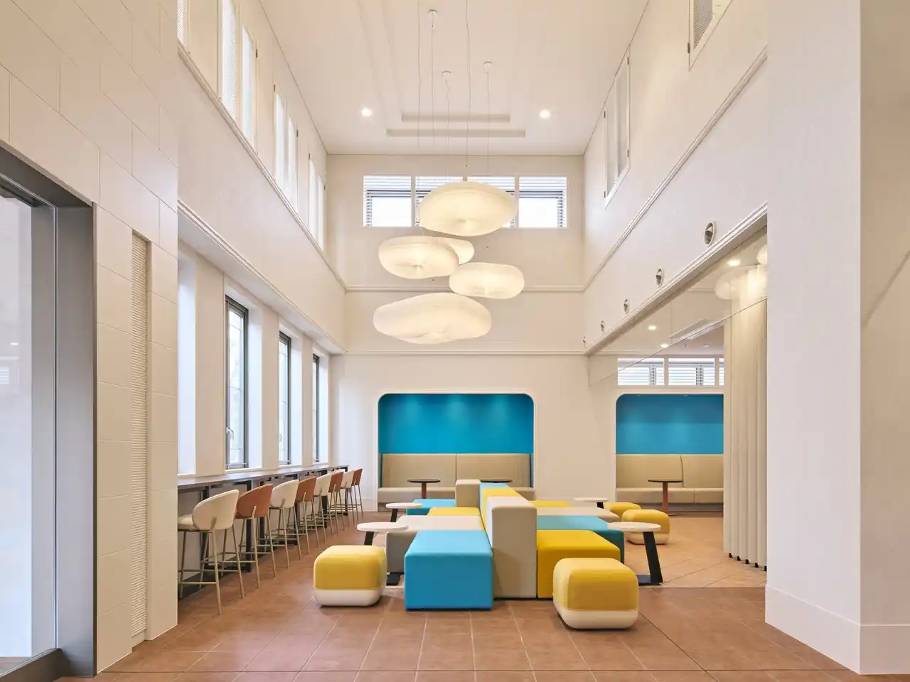 館内には、滞在スタイルに合わせて自由に過ごせるオープンで多目的な共用スペースを多数設けており、街を散策した後にリラックスしたり、仕事をしたり、交流を楽しんだりと、思い思いの時間を過ごすことができます。広々としたパブリックスペースやダイニングエリアは、さまざまな目的のゲストを快適に迎え入れる空間として設計されています。 |