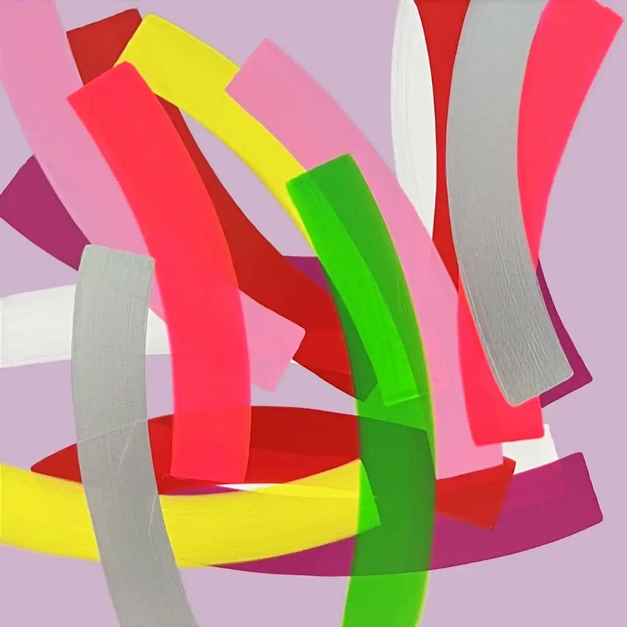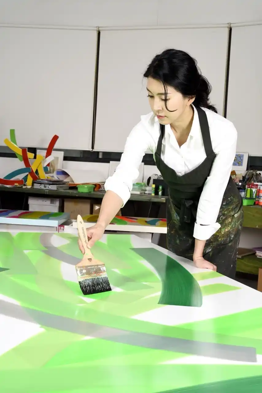 彼女の制作は、繰り返し重ねられる曲線状のカラーバンド(color band)を中心に展開される。画面上に蓄積される有機的な色面は、単なる造形要素にとどまらず、人間の思考や感情、そして情緒的状態を感覚的に翻訳する一種の視覚的メディアとして機能している。 |