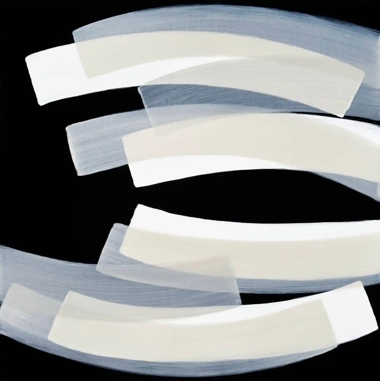色彩の帯(カラーバンド)は、単なる装飾ではなく、特定の感情やメッセージを象徴しています。 「真の対話は言葉を超えたところにある」という考えから、文字を消す行為が色彩の帯へと進化し、現在は「Un Passage」というシリーズ名で、心の通路や感情の交流を表現しています。 |