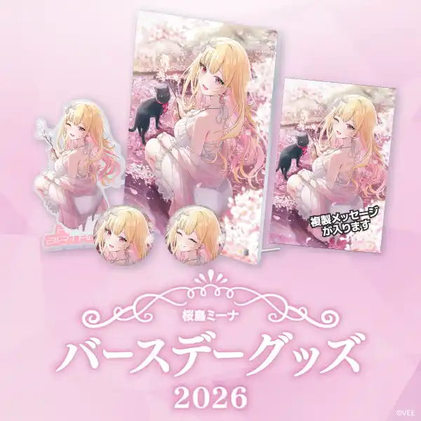 | 本日・3月17日に誕生日を迎えた桜鳥ミーナのバースデーグッズの詳細を公開するとともに、公式オンラインショップ「VEE Official Shop」にて受注販売を開始しました。 | |||||||||