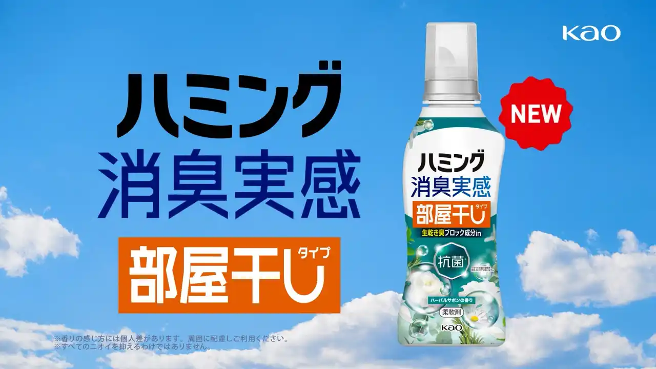 花王株式会社の柔軟仕上げ剤「ハミング」は、2026年3月14日、部屋干しに特化した『ハミング消臭実感 部屋干しタイプ』を新発売いたしました。 |