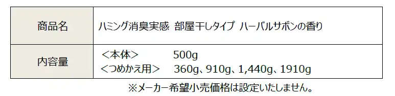 ハミング消臭実感 部屋干しタイプ ハーバルサボンの香り(本体500g) |