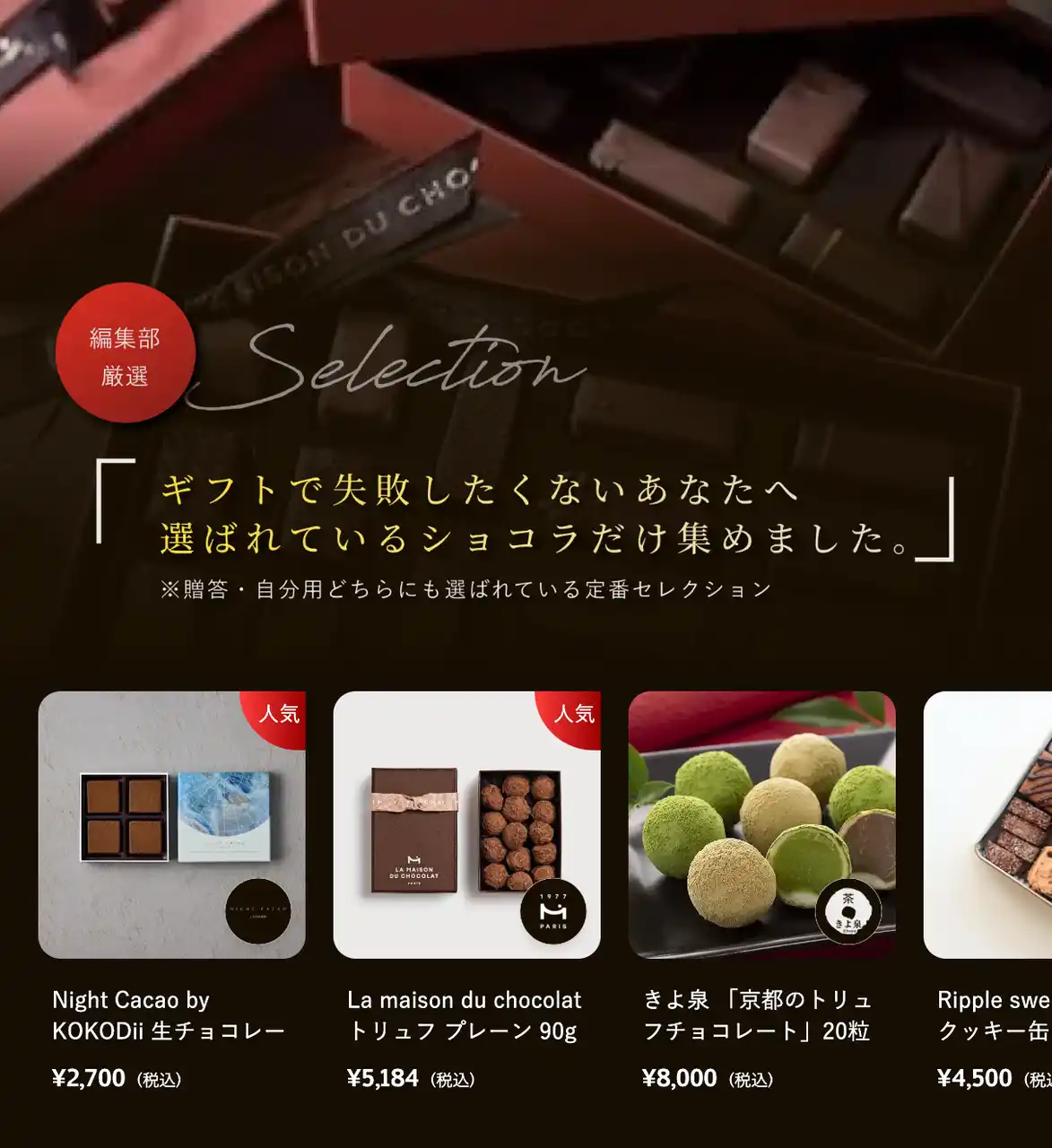 Choclieでは今後、チョコレート特集の拡充、ギフト提案コンテンツの強化、ブランドコラボレーション企画などを通じて、チョコレート文化の魅力をより多くのユーザーへ届けてまいります。 |