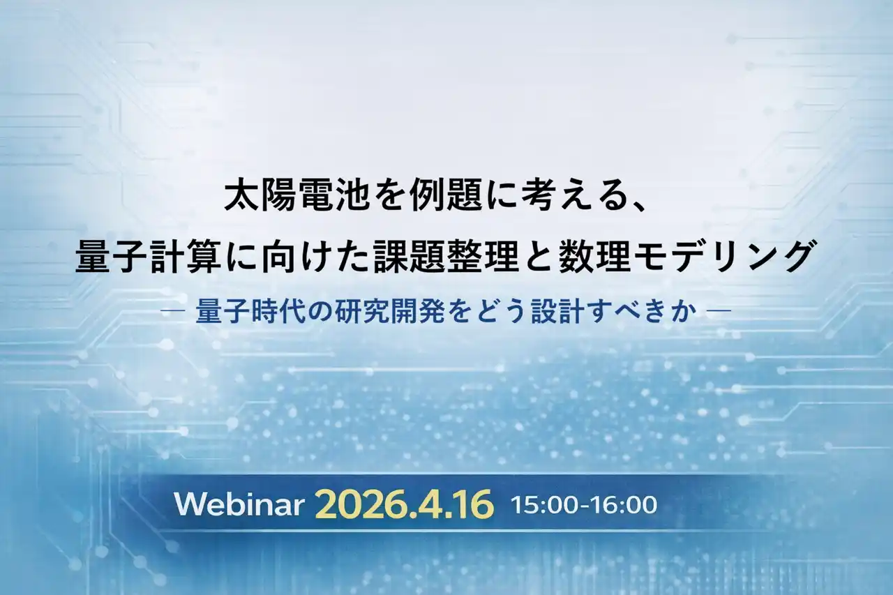量子コンピュータの産業応用を推進する株式会社QunaSys(本社:東京都文京区、代表取締役CEO:楊 天任)は、企業の研究開発部門を対象に、量子コンピュータ時代に向けた研究開発戦略をテーマとしたオンラインウェビナーを2026年4月16日(木)に開催いたします。 量子コンピュータは材料開発や創薬、エネルギー分野などの複雑な計算問題に新たな可能性をもたらすと期待されています。一方で、多くの企業では「どの研究テーマに量子コンピュータを適用すべきか」が整理できず、検討が情報収集段階で停滞しているケースも少なくありません。 |