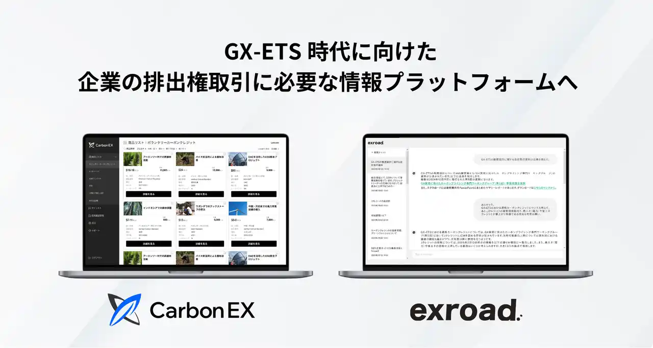 Carbon EXは、カーボンクレジット・排出権取引所の運営を通じて、クレジットの創出、認証、売買、情報提供、活用支援をワンストップで提供しています。今回のM&Aは、GX-ETS第2フェーズを見据え、情報基盤と実行支援を統合し、制度対応から実務実行までを支援する体制を強化することを目的としています。 |