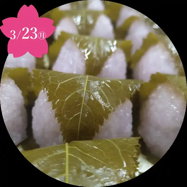 道明寺生地でこし餡を包み、香り豊かな桜の葉でくるり。 |