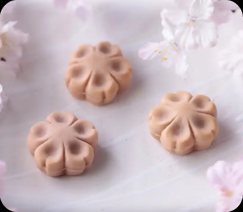 京都らしい道明寺生地を使い、やさしい⽢みで上品に。 |