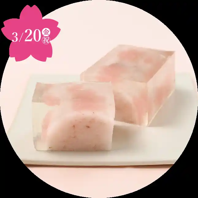 桜の塩漬け入り餅⽺羹に琥珀羹、花景⾊をうつしました。 |