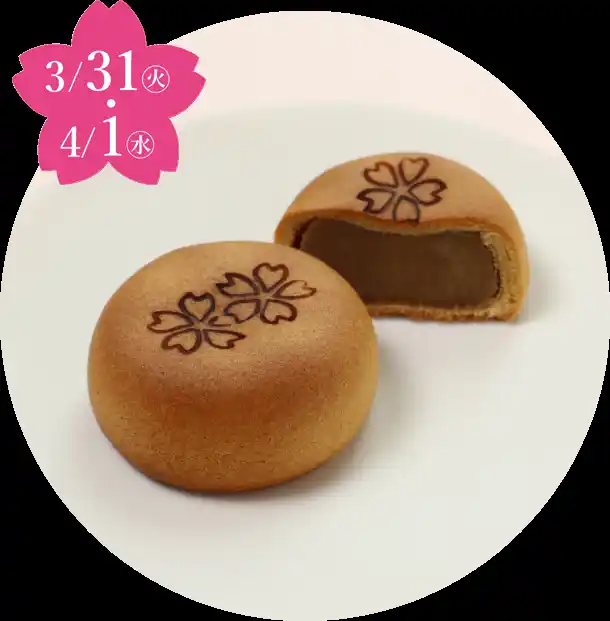 しっとり桃山製生地に桜風味のこし餡が入った、愛らしい桜。 |