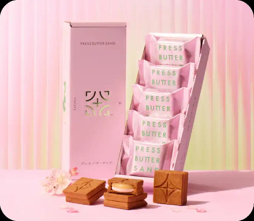 桜が香るクッキーで、桜バタークリーム&定番バターキャラメルをサンド。 |