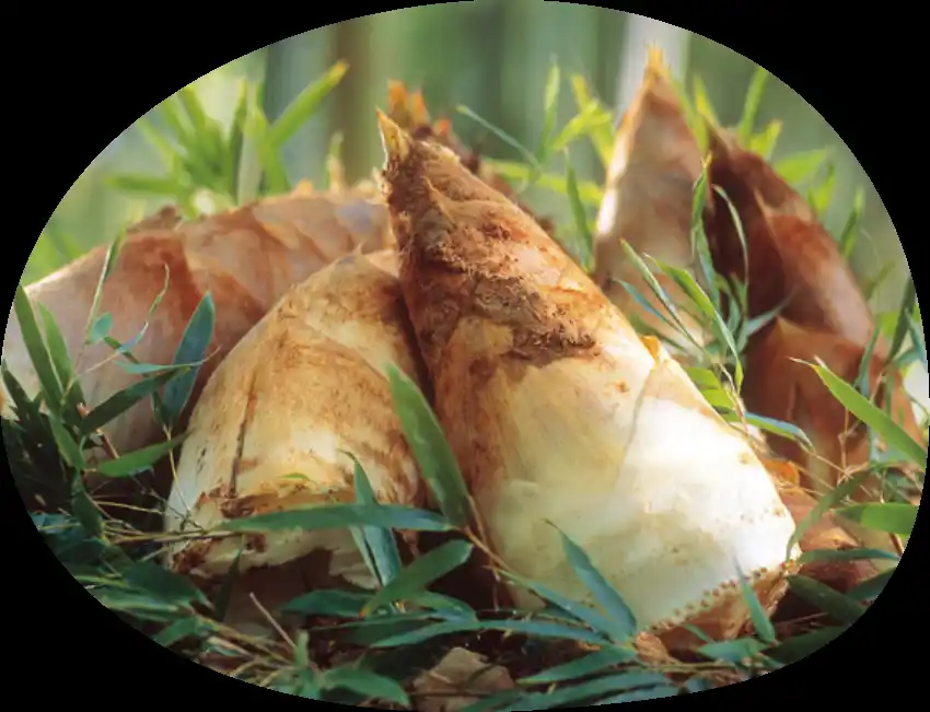 新鮮な筍をはじめ、名物の筍ごはん、山菜など。 |