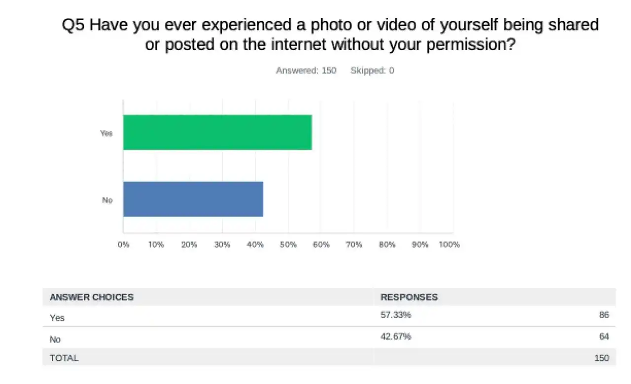 57.3%が「自分の写真・動画が許可なく共有された経験がある」64%が「オンライン検知・アラートサービスを利用したい」70%が「料金を支払ってもよい」と回答 |