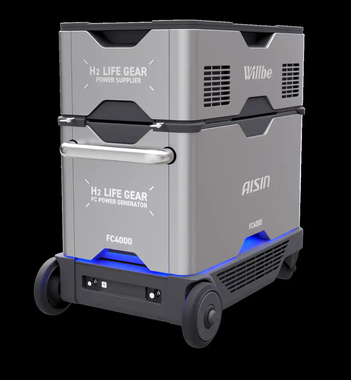 株式会社アイシン(本社:愛知県刈谷市、取締役社長:吉田 守孝)は、本日3月17日(火)から19日(木)まで東京ビッグサイト(東京都江東区)で開催される「第25回H2&FC EXPO(水素・燃料電池展、主催:RX Japan株式会社)」において、トヨタグループブースに「可搬型FC発電機」と「小規模水素製造PEM※水電解パッケージ」を出展します。 本展示では、水素を活用した技術として、発電から水素製造までに関わる2製品を紹介します。 可搬型FC発電機 「可搬型FC発電機」は、燃料電池車(FCEV)や家庭用燃料電池「エネファーム」で培った技術を応用した、可搬型の燃料電池発電機です。水素カートリッジなどから供給した水素を燃料とし、燃料電池によって発電を行います。独自の制御技術により、高効率・高出力と優れた静音性を両立するとともに、搭載レイアウトの最適化により小型・軽量化を実現しています。土木・建設現場やレジャー、災害時の非常用電源のほか、屋内イベントなど、幅広い利用シーンを想定しています。 |