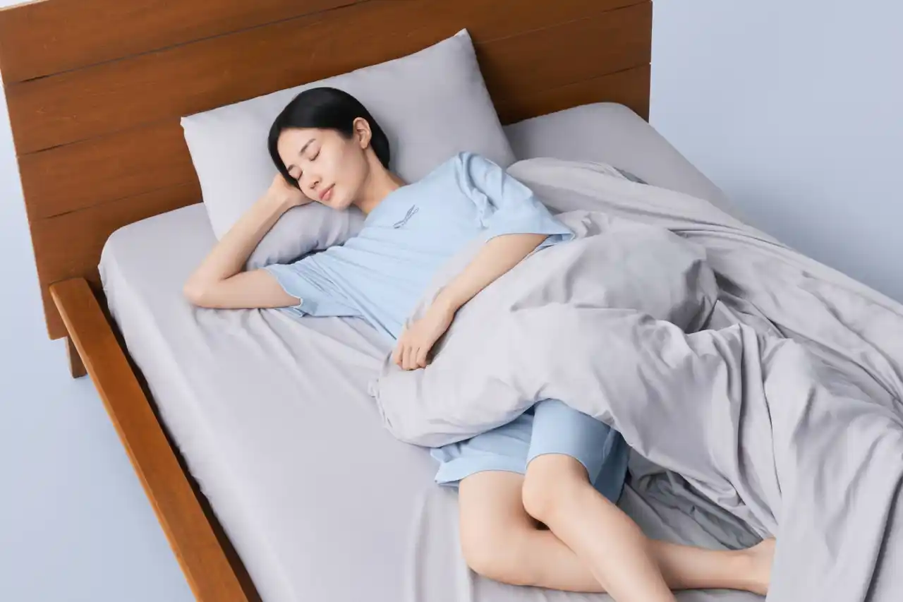 肌触りや着心地にこだわり、レーヨンを配合した上質でなめらかな素材を採用しました。全身を包み込むような心地よさが、スムーズな入眠を誘います。 |