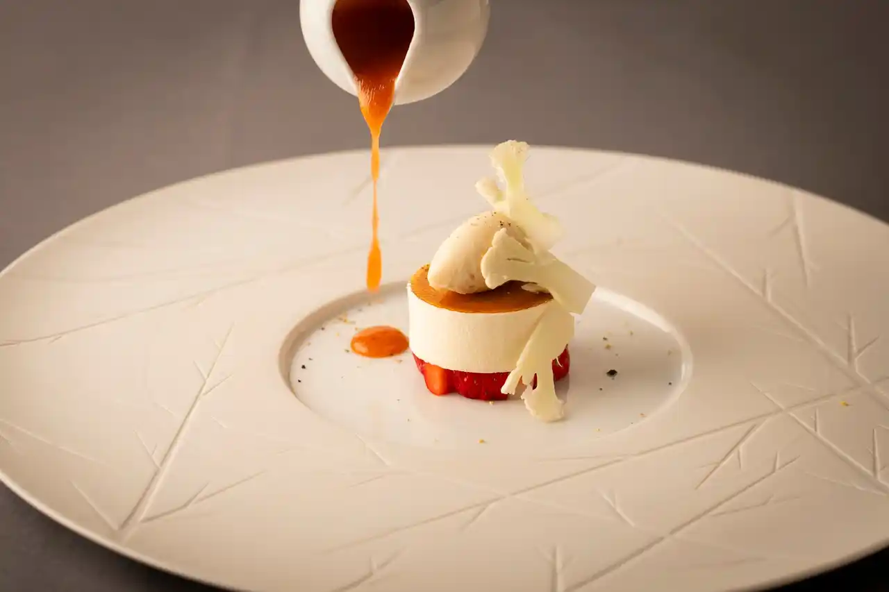 竹内はこれまで、銀座レカンのスイーツ監修をはじめ、多くの現場を経験してきました。その中で強く感じたのは、「作り手自身が目の前で提供する体験」の価値でした。グランメゾンのような大きなレストランにはレストランならではの魅力がありますが、自身がすべてを目の前で作り上げ、お客様と向き合うスタイルこそが理想だと確信。 その思いが、将来的なデザートコース専門店の構想へとつながっています。 |