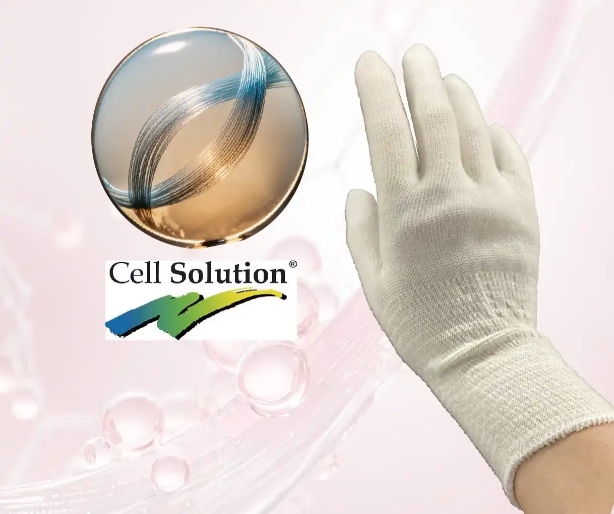 本製品には、ドイツで開発された国際特許取得の繊維「セルソリューション(R)」を採用しています。 |