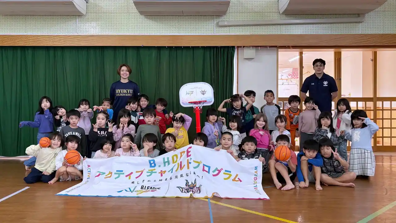 この度、琉球ゴールデンキングスでは、B.LEAGUEの社会的責任活動である「B.Hope アクティブチャイルドプログラム」の一環として、うるま市内の保育園・こども園を訪問し、子どもたちが体を動かす楽しさや健康的な生活習慣を学ぶ活動を実施しました。 |