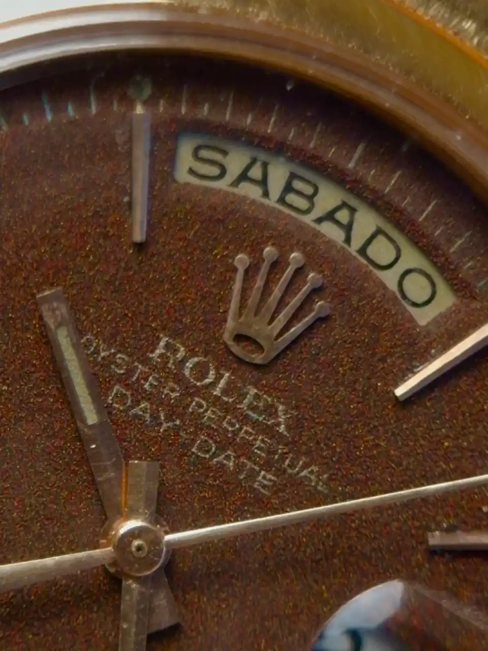 一目見ただけで魅惑の世界へ引き込まれるようなブラウンダイアル。 これはコレクターの間で“幻”とも称される、長い年月と環境の影響によって生まれるトロピカルダイアルである。 |
