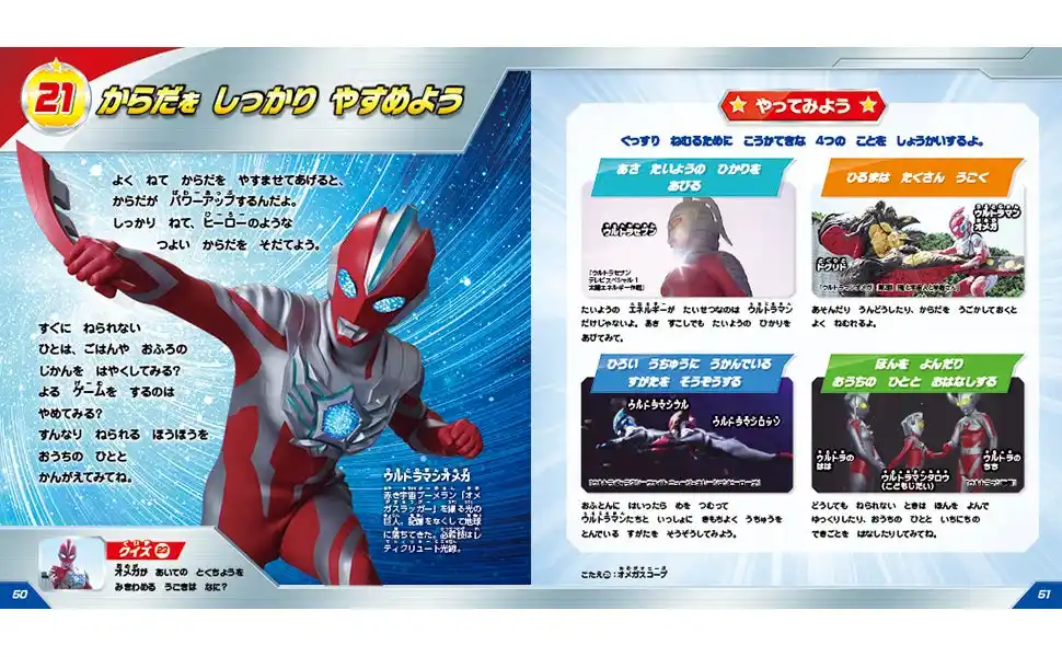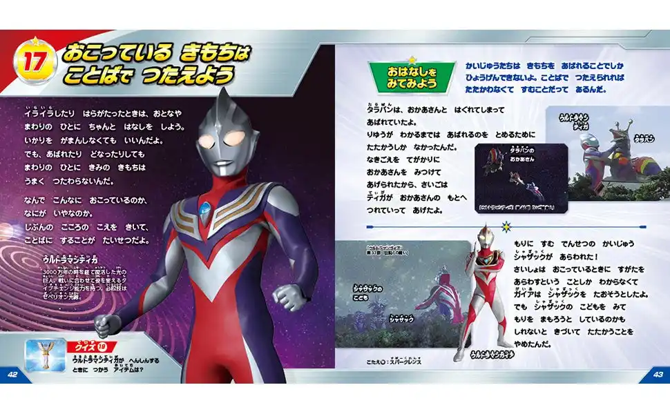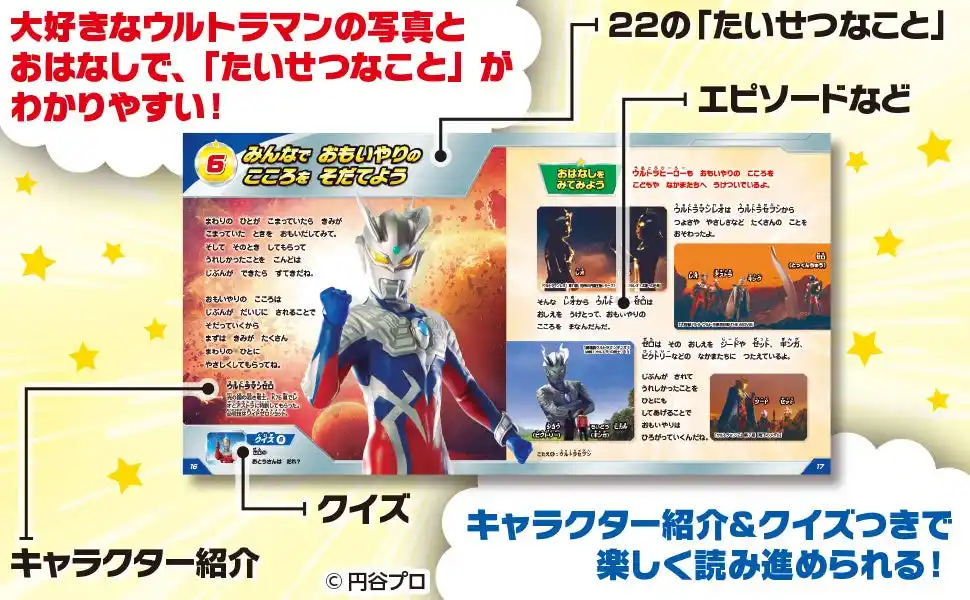 | ウルトラマンたちの教えは全部で22編。「あいさつはまほうのことば」「しっぱいはせいこうのさいしょのいっぽ」など、お子さんが新生活を始める前に教えてあげたいメッセージばかり。 | |||||||