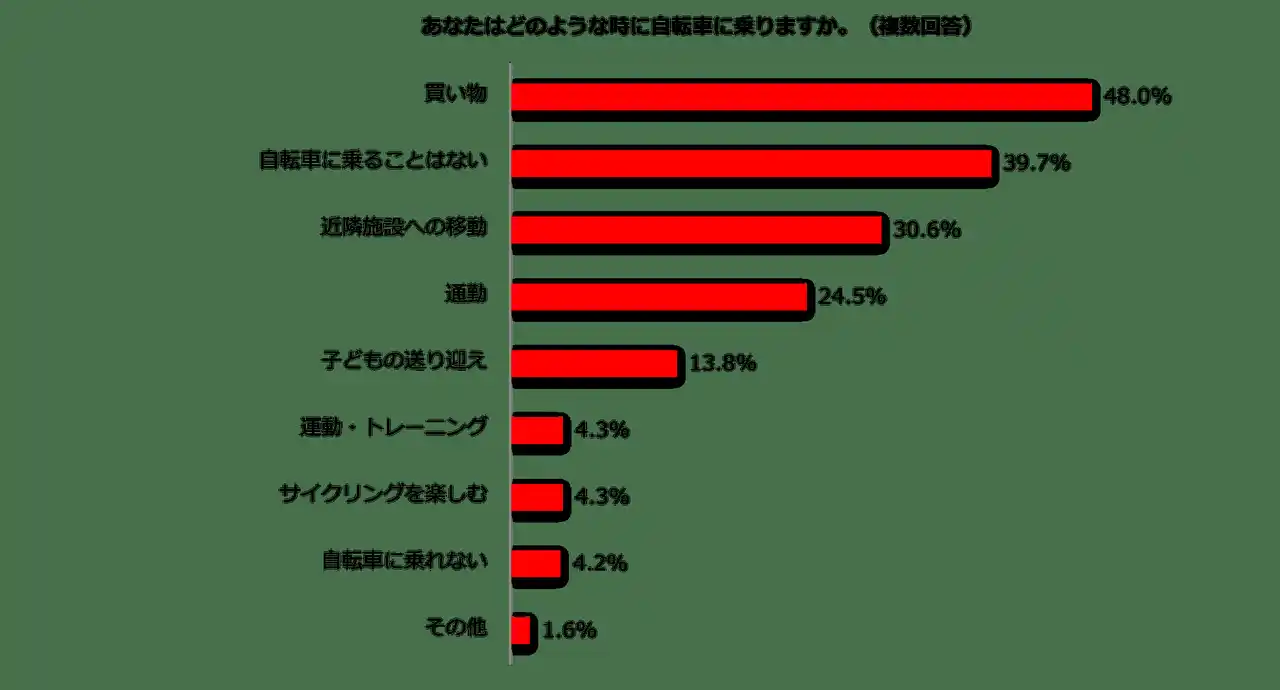 1.自転車に乗る機会「買い物」48.0%、「自転車に乗ることはない」39.7% |