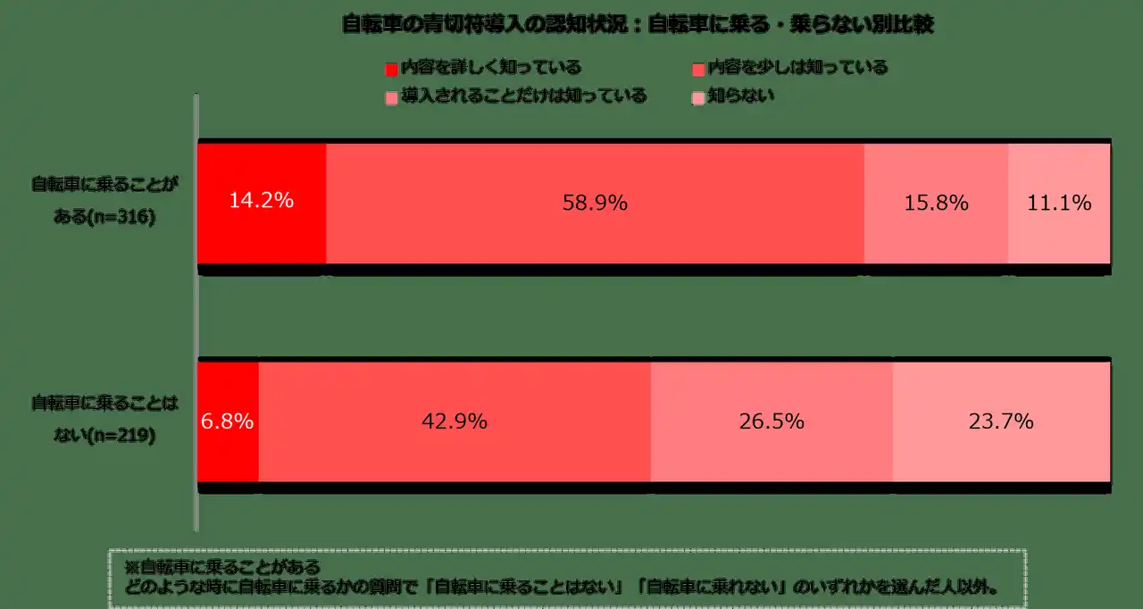 3.青切符導入の認知:自転車に乗る・乗らない/全体と通勤利用者の比較 |