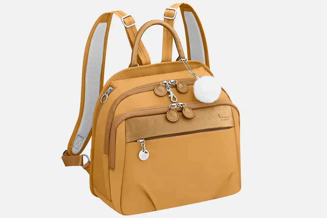 「カナナリュック4」は、着物のように、後ろ姿も綺麗に、とのアイディアから、お太鼓結びの着物帯をイメージしてデザインしたバッグシリーズ。機能性、背負い心地、軽さにこだわり、旅先でもアクティブに動けます。 |