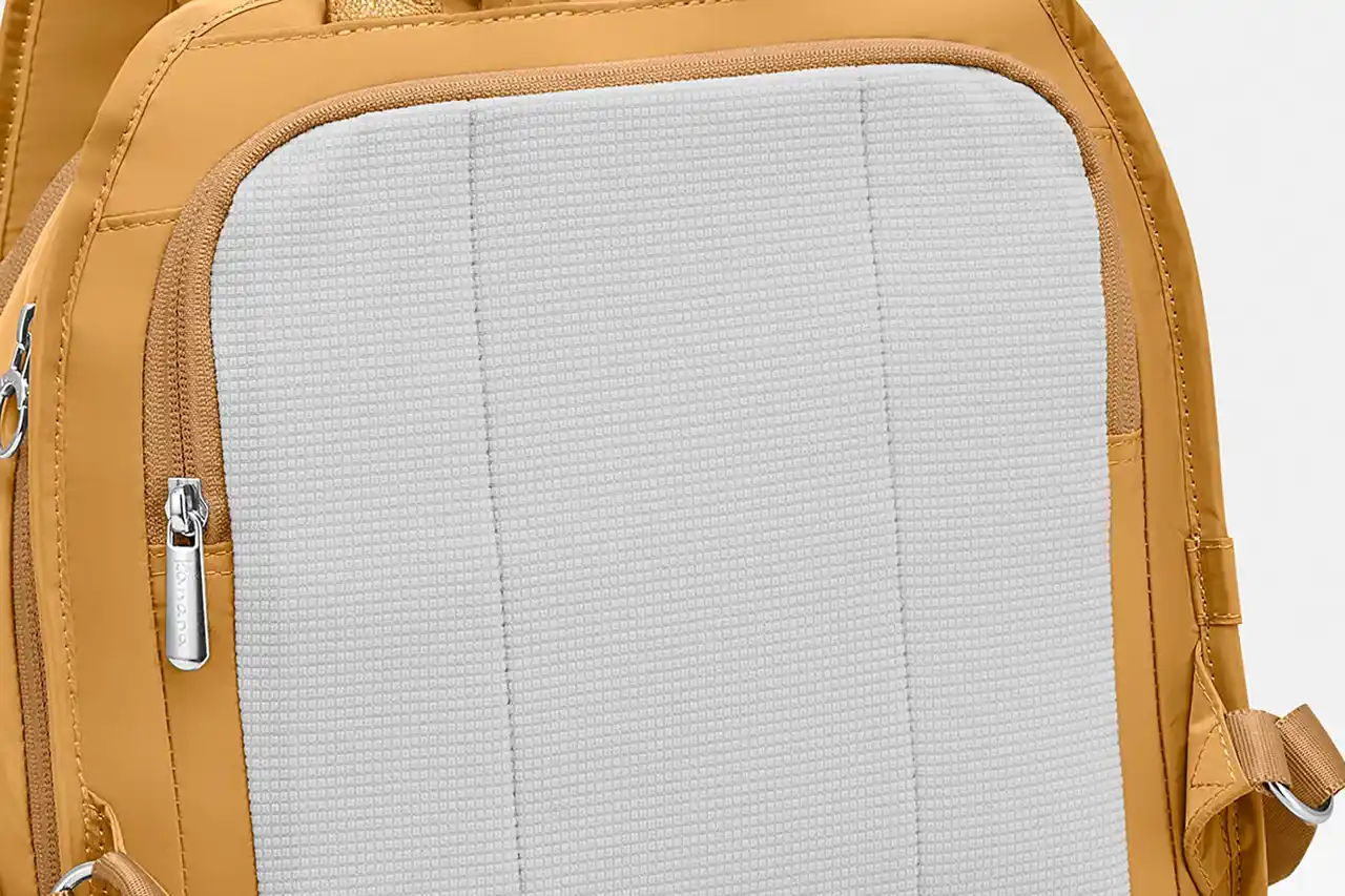 背面と肩ベルト裏に吸水速乾生地を採用。 |