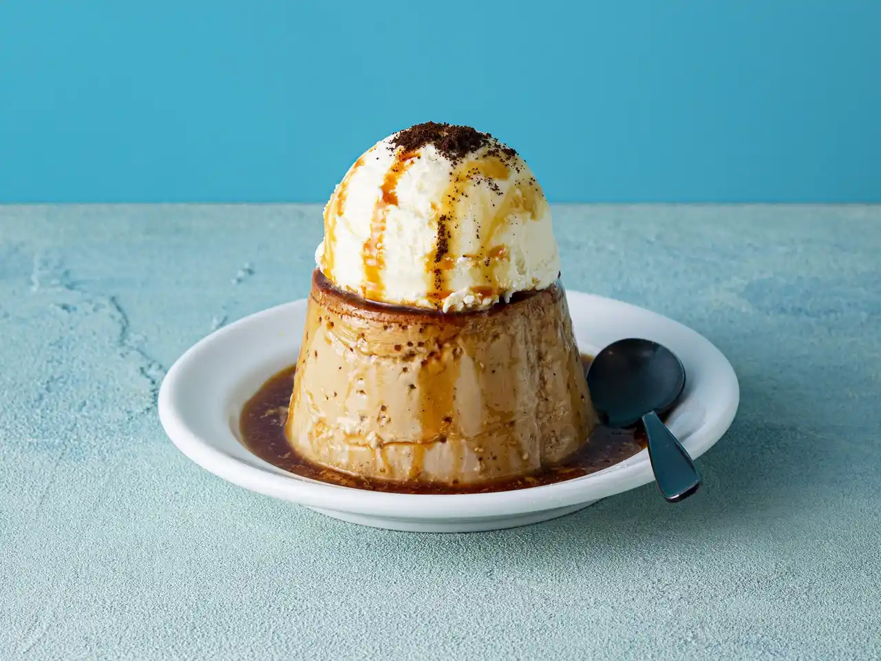 大きめサイズのコーヒープリンの上にアイスがのった、ビジュアルインパクト抜群な一品。ほろ苦いコーヒーの香りを閉じ込めた、至福の「大人のためのプリン」です。 なめらかでコクのあるコーヒープリンに、やさしい甘さのカラメルを合わせ、上にはアイスと挽いたコーヒー豆をトッピング。「デザートでもあり、一杯のコーヒーでもある」を目指した、深い余韻が広がるご褒美プリンです。 |