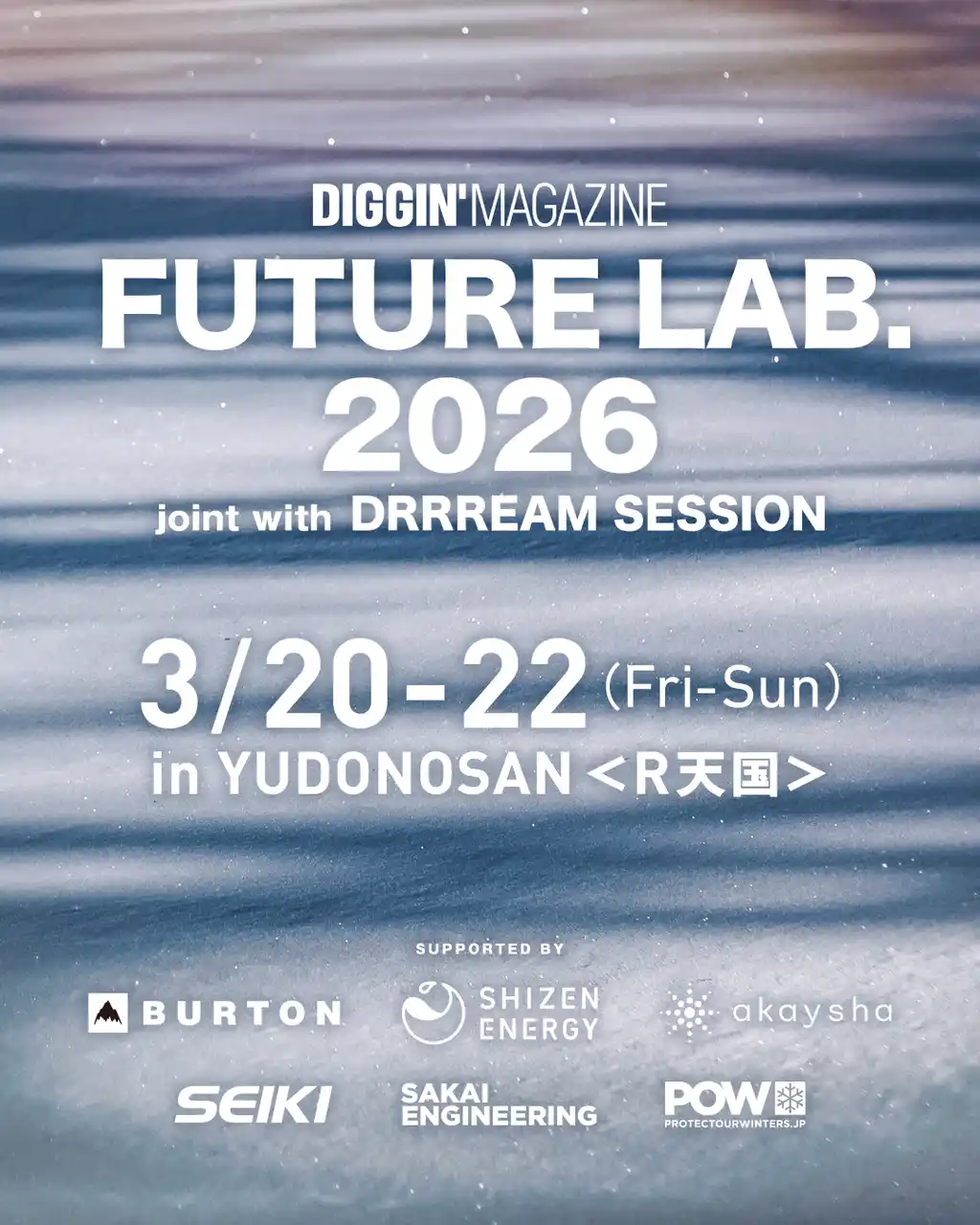| Burtonは、DIGGIN‘ MAGAZINEが主催し、太陽光発電で稼働するロープトーを使ってスノーボード・スノースケート・スノートイを楽しむプロジェクト「Future Lab.」が、3月20日(金・祝)~22日(日)に山形県・湯殿山スキー場にて開催されるイベント「DRRREAM SESSION」とのコラボレーションという形で開催されるにあたり、特別協賛としてイベントをサポートいたします。 | ||||||||