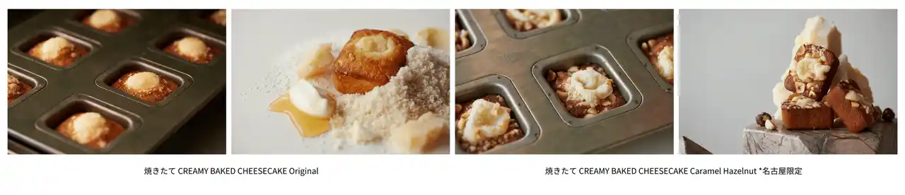 「Mr. CHEESECAKE」からは、西尾抹茶と小豆を組み合わせ、名古屋の地に根付く茶の湯文化や和菓子文化を表現した「Mr. CHEESECAKE Rich Matcha Azuki」が登場します。また、毎日12時に店内で焼き上げた、出来立てのおいしさをお楽しみいただける「焼きたて CREAMY BAKED CHEESECAKE」を販売します。定番の芳醇なチーズの香り漂う「CREAMY BAKED CHEESECAKE Original」と、限定のキャラメルとヘーゼルナッツを使用した香ばしい味わいの「CREAMY BAKED CHEESECAKE Caramel Hazelnut」の2種をご用意します。 |