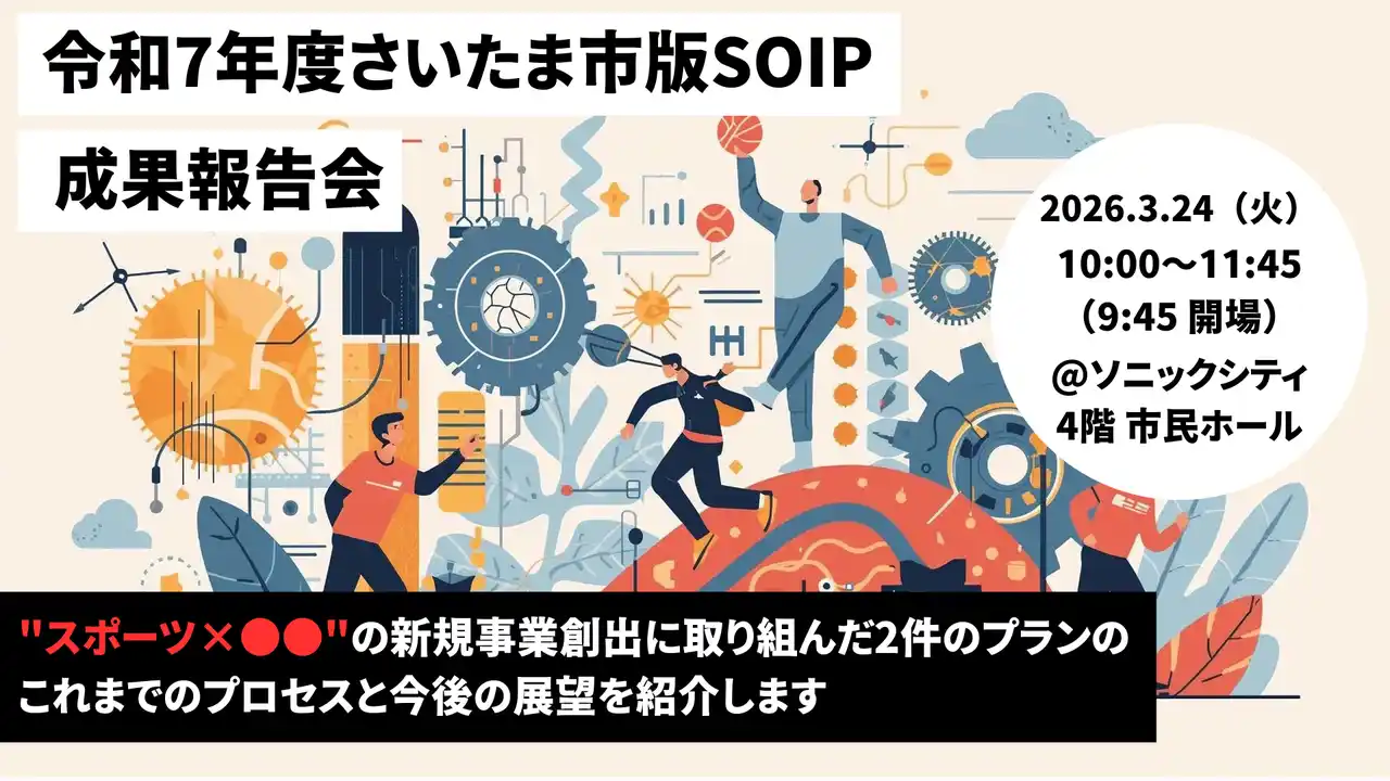 | 一般社団法人さいたまスポーツコミッション(所在地:さいたま市/代表理事 遠藤秀一、以下「SSC」)は、さいたま市および株式会社ザスモールシングス(所在地:東京都港区/代表取締役社長 田上悦史)と連携し、スポーツとあらゆる産業の共創により新たなビジネスを創出し、地域課題や社会課題の解決を目指す「さいたま市版SOIP」を推進しています。 | |||||||||||||||||||||||||||||||||||||||||||||||