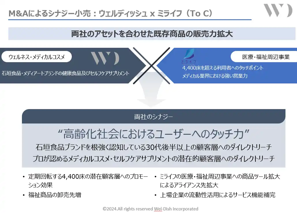 M&Aを通じて、当社が保有する食品・ウェルネス・メディカルコスメ商材と、 |