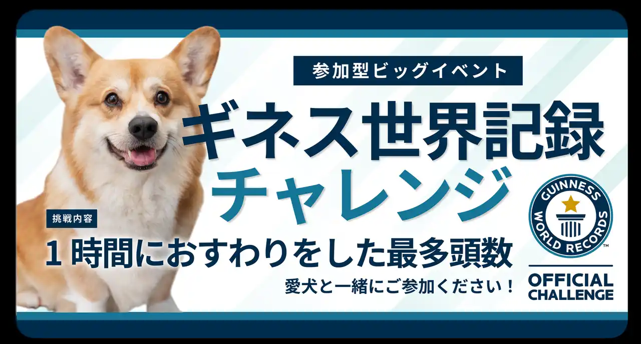 「1時間におすわりをした最多頭数」のギネス世界記録挑戦企画を実施します。来場者の皆様も愛犬とともにご参加いただける特別企画です。皆さまのご参加が、世界記録達成への大きな一歩になります。 |
