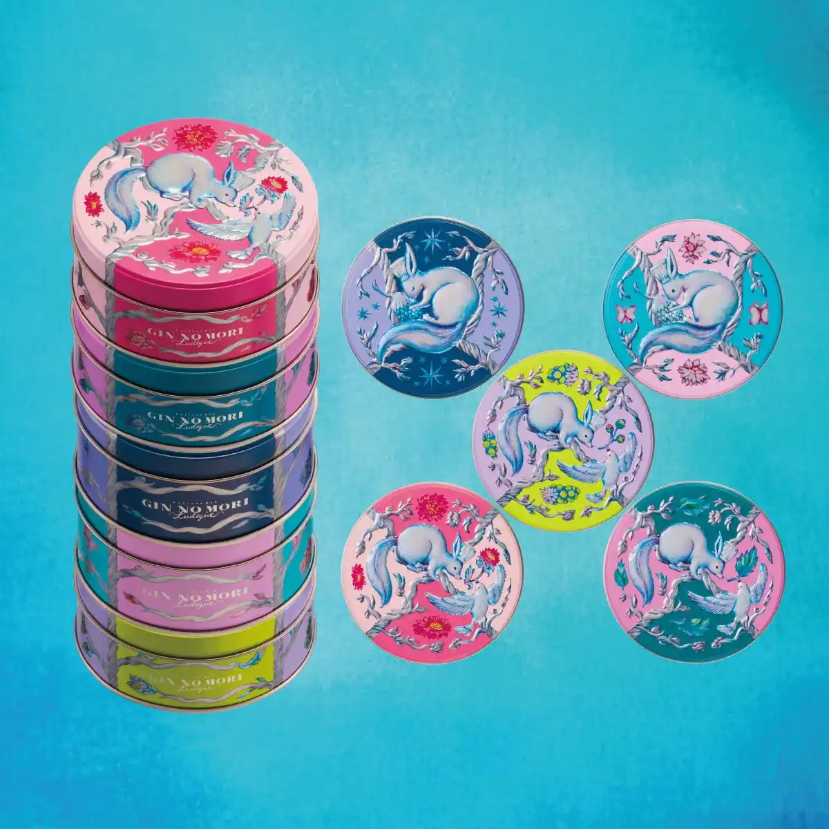GIN NO MORIの代名詞ともいえるクッキー缶も、『ルディック』ならではのシリーズとしてご用意しました。仕切りを使わず、個性豊かなクッキーをオリジナルの丸缶にぎっしりと詰め合わせた贅沢な一缶です。それぞれのテーマに合わせてストーリーを持たせた、全5種類のラインナップ。 コフレと同様、缶を並べると枝がつながるデザインになっており、デザインを通してルディックの世界観をお楽しみいただけます。 |