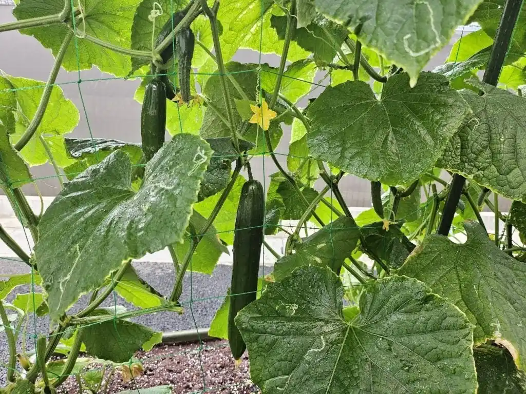 | きゅうりを育てる活動では、カラスに実を食べられてしまうなどのハプニングもありましたが、想像以上に収穫できた年もあり、社員同士の会話や交流のきっかけとなりました。 | |||||||||