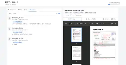 クライアント企業がリンク経由で必要書類を一括アップロード。テンプレート照合で不足書類を自動検出します。 |